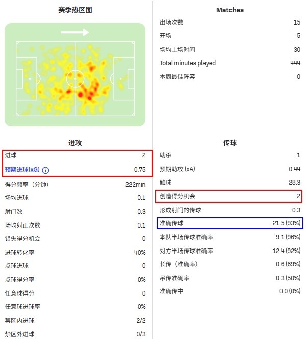 要知道他的预期进球才0.75,不得不说,贝尔纳尔在门前是真的有点东西。